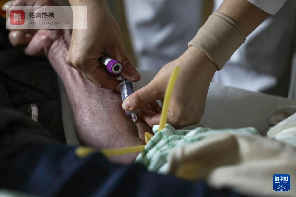 2月4日5时许,一名护士在急诊病房为患者抽血。