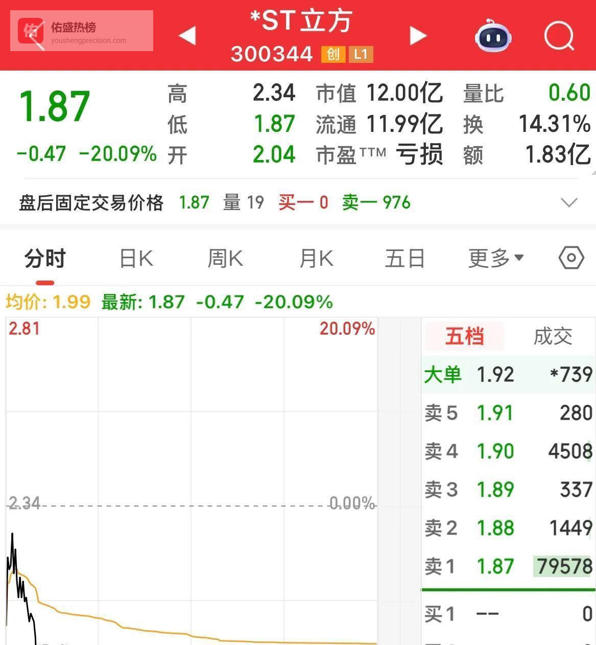 这意味着现在持有ST立方的投资者,可能面临巨额亏损。