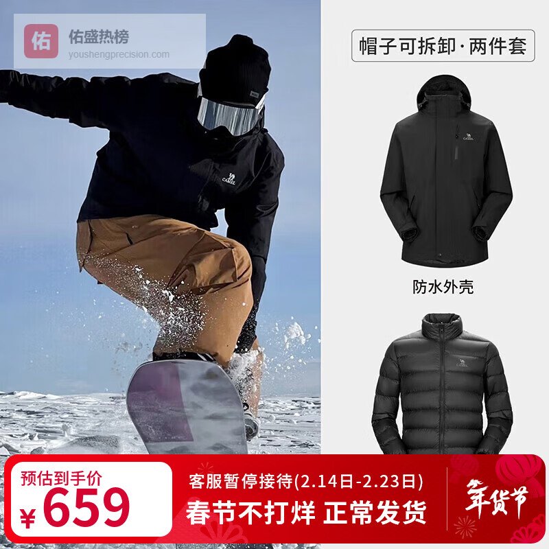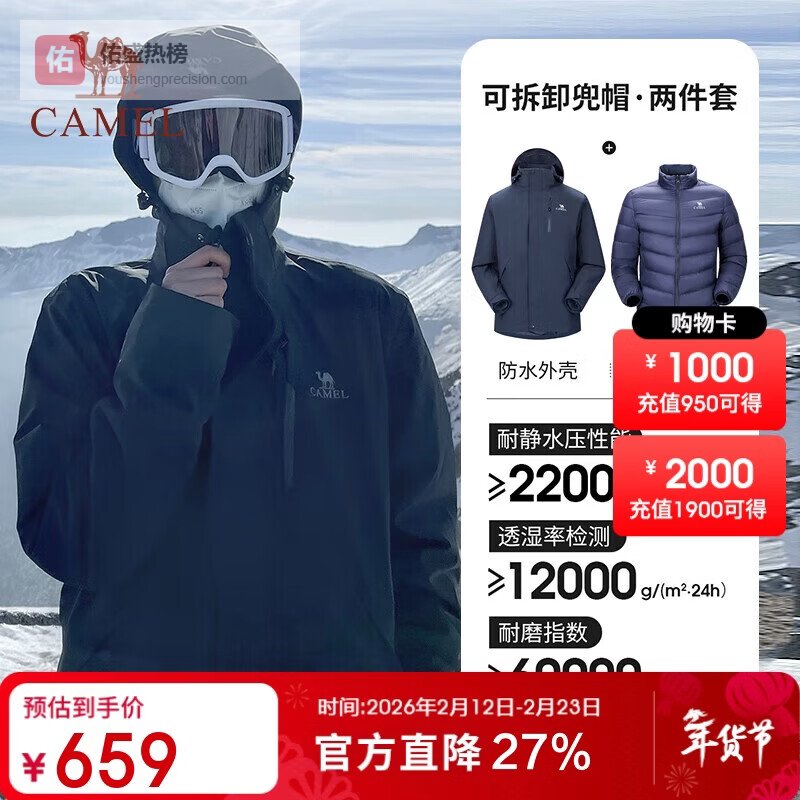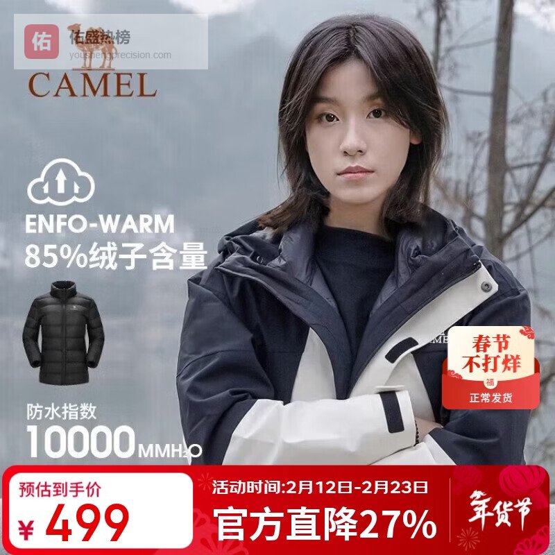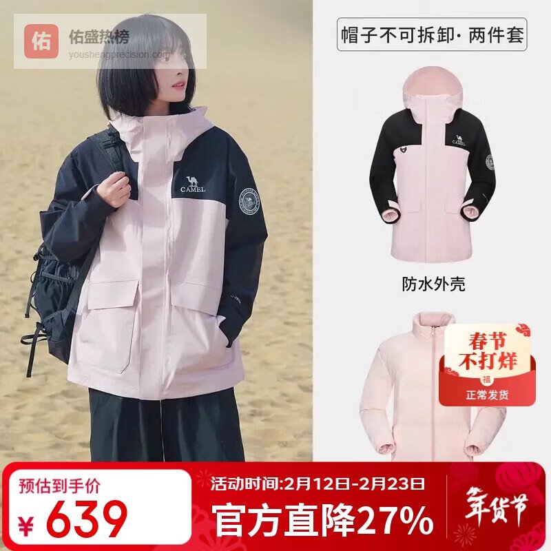 骆驼(CAMEL)户外冲锋衣保暖羽绒内胆男女三合一登山服【黄金甲】A13CAFa0067¥