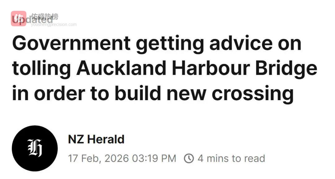 2月17日,NZ Herald和STUFF分别披露,新西兰正在研究如何为第二条Waitematā跨海通道筹资。