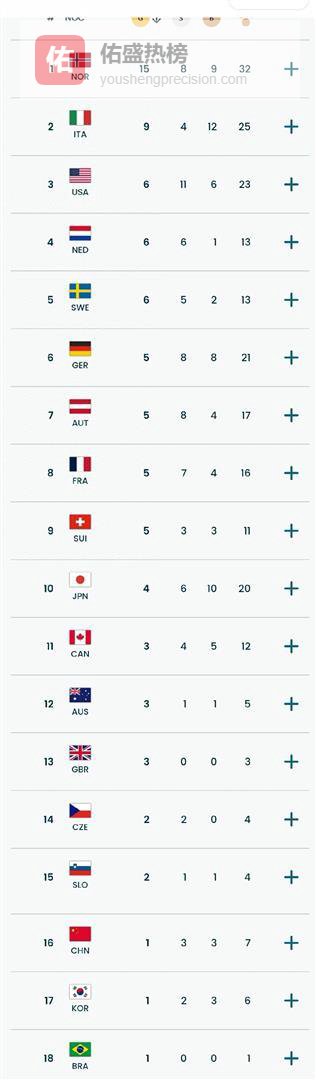 当我们把目光投向整个金牌榜,格局已经非常清晰。 北欧强国挪威队展现出了恐怖的统治力,他们以15块金牌稳居金牌榜第一,同时奖牌总数也排在首位。 从开赛初期他们就一路领先,蝉联榜首的希望极大。 东道主意大利队则充分利用了主场优势,目前收获了9金4银12铜,排名金牌榜和奖牌榜的第二位。 美国、荷兰、瑞典三支队伍同样表现出色,各自拿到了6块金牌,分居第三到第五位。 德国、奥地利、法国、瑞士则组成了第二集团,各自获得了5枚金牌,排名第六到第九位。