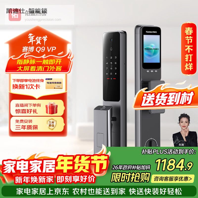 2、凯迪仕赛博Q9 VP这款凯迪仕Q9 VP电子锁功能挺全面,指静脉识别是亮点,手指有磨损或者潮湿也能用,灵敏度高。解锁方式也多,指纹、密码、卡片,甚至还有远程临时密码!加上130°大广角的可视猫眼,能实时监控门外情况,变声通话功能也考虑到了安全,一个人在家也不怕。