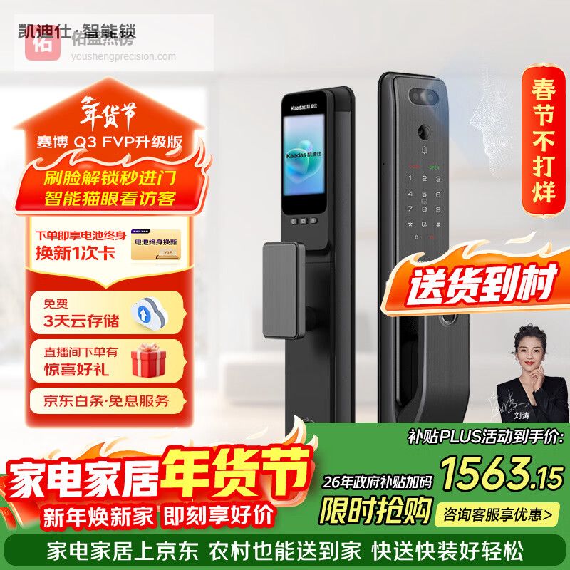 4、凯迪仕赛博Q3 FVP凯迪仕这款电子锁赛博Q3 FVP,解锁方式真是丰富!人脸识别速度嗖嗖的,号称暗光环境也能hold住。指纹、密码、刷卡、APP,甚至还有临时密码和钥匙,感觉带再多东西出门也不怕忘带钥匙啦!听说有朋友就冲着这刷脸功能去的,体验后直呼“秒开”,方便到飞起!