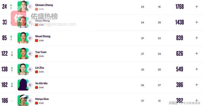 WTA最新排名出炉:郑钦文提升2位创历史,TOP3不变