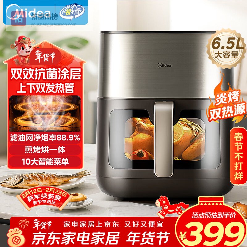 点评:这个美的空气炸锅容量是真大,6.5L,家里人多聚餐也够用,一次能烤不少东西。有个可视窗口是真的方便,随时能观察食物状态,不用老是拉出来看,这点还不错。