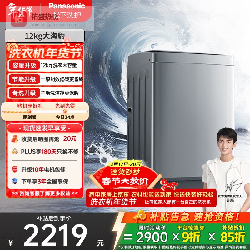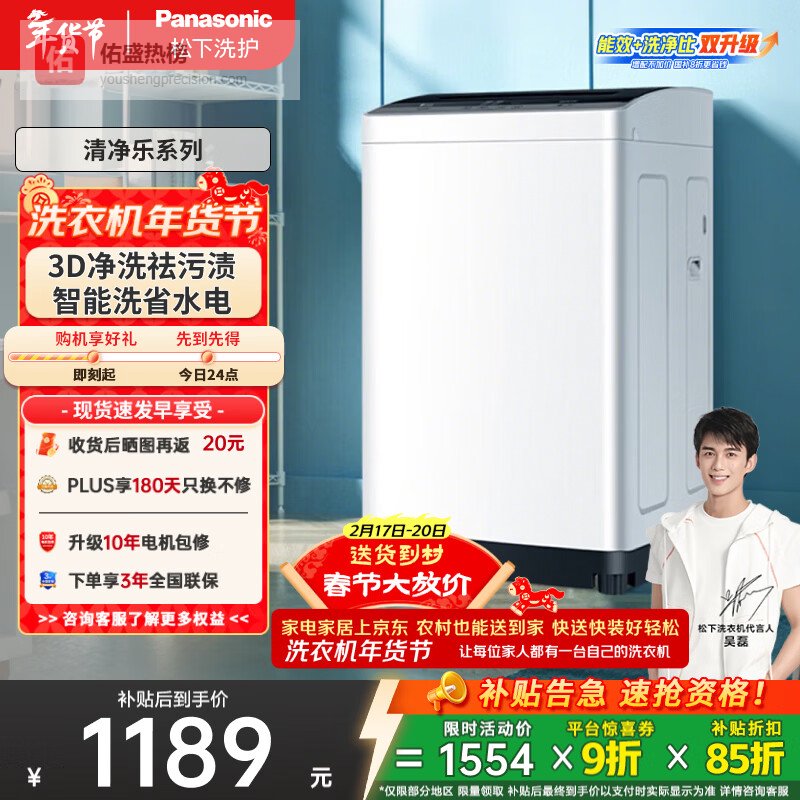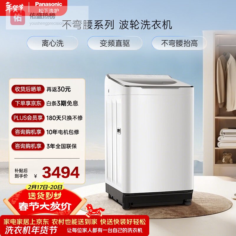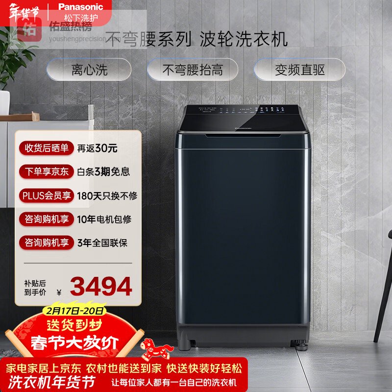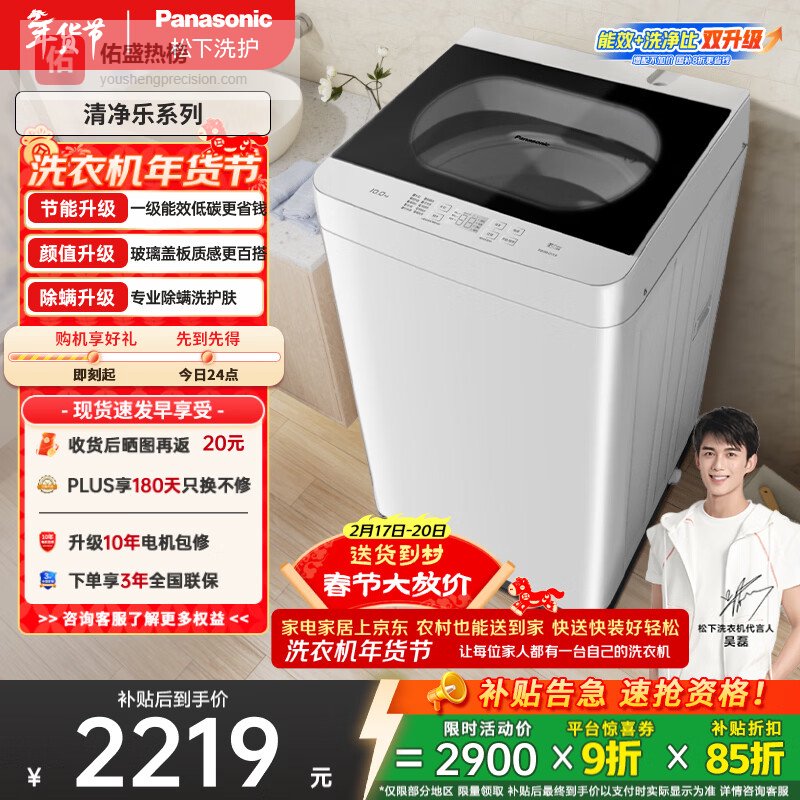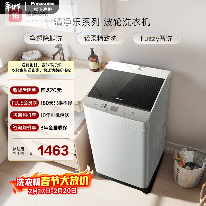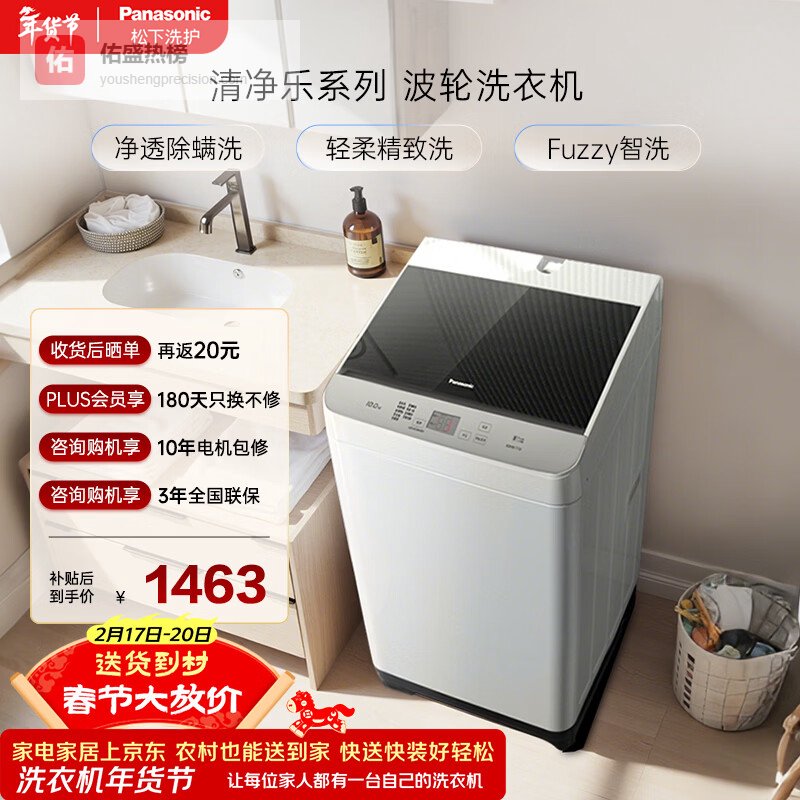【京东自营】松下波轮洗衣机10KG全自动家用抗菌除螨运动浸泡洗线屑过滤智洗省水省电桶洁净以旧换新XQ¥