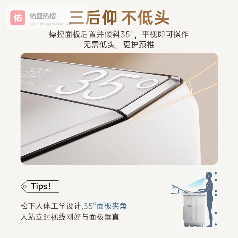 这款洗衣机以其10公斤大容量而受到家庭用户的青睐,满足日常洗涤需求。无论是婴儿衣物还是床单都能轻松容纳。同时,采用了不弯腰设计,配合超大宽口,前置操作面板,人性化的设计让使用者在操作时避免了弯腰引起的腰部不适。