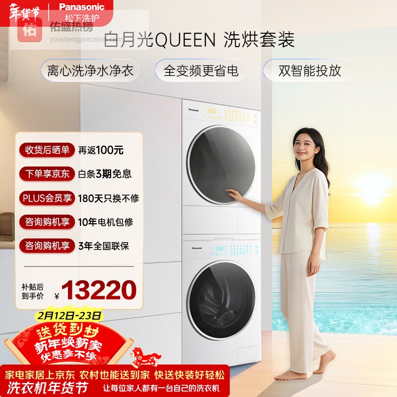 【京东自营】松下白月光5.0洗烘套装10KG滚筒洗衣机全自动+10KG烘干机专业除毛养宠家庭优选81¥