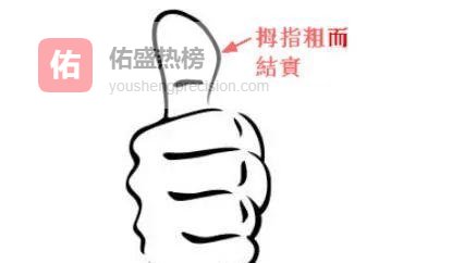 拇指粗、节凸、侧面看像小肉柱,且位置偏低——这是典型的“强权拇指”。
