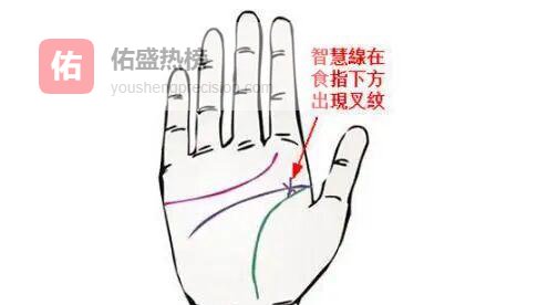 智慧线在食指下方出现分叉——形似“Y”又似“丫”——被俗称为“骡子纹”。