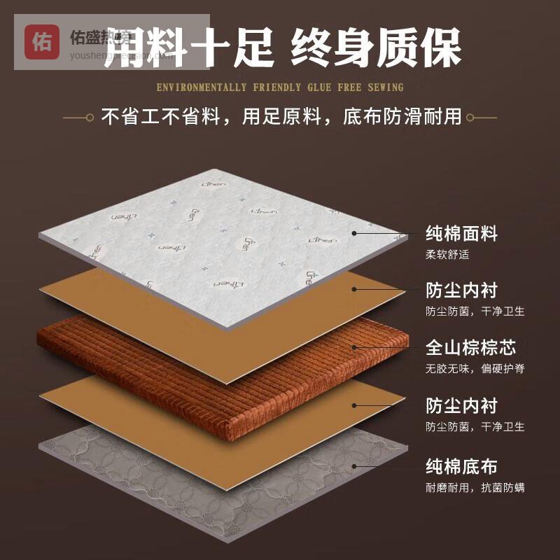 精选山棕内芯:天然山棕丝填充,强韧耐用且透气,环保并不易霉变,为用户提供清新舒适的睡眠环境。