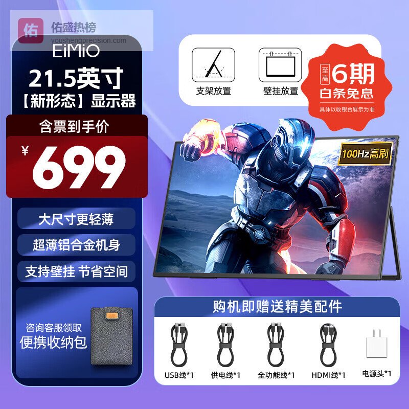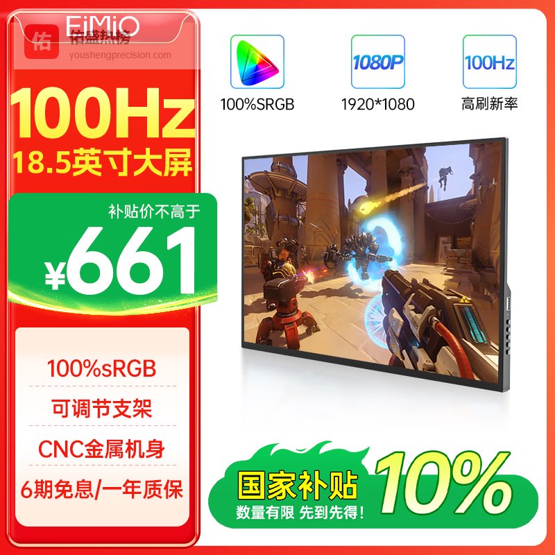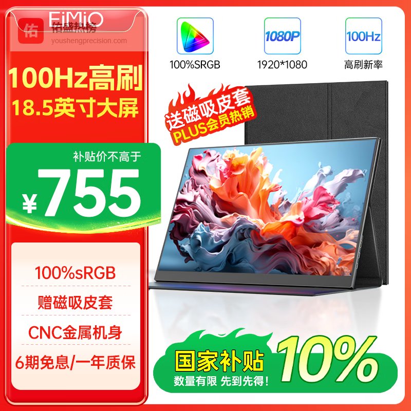 Eimio便携显示器 18.5英寸【100Hz高刷】显示屏HDR电脑笔记本扩展屏switch/PS4/5移动外接全面屏E18U¥