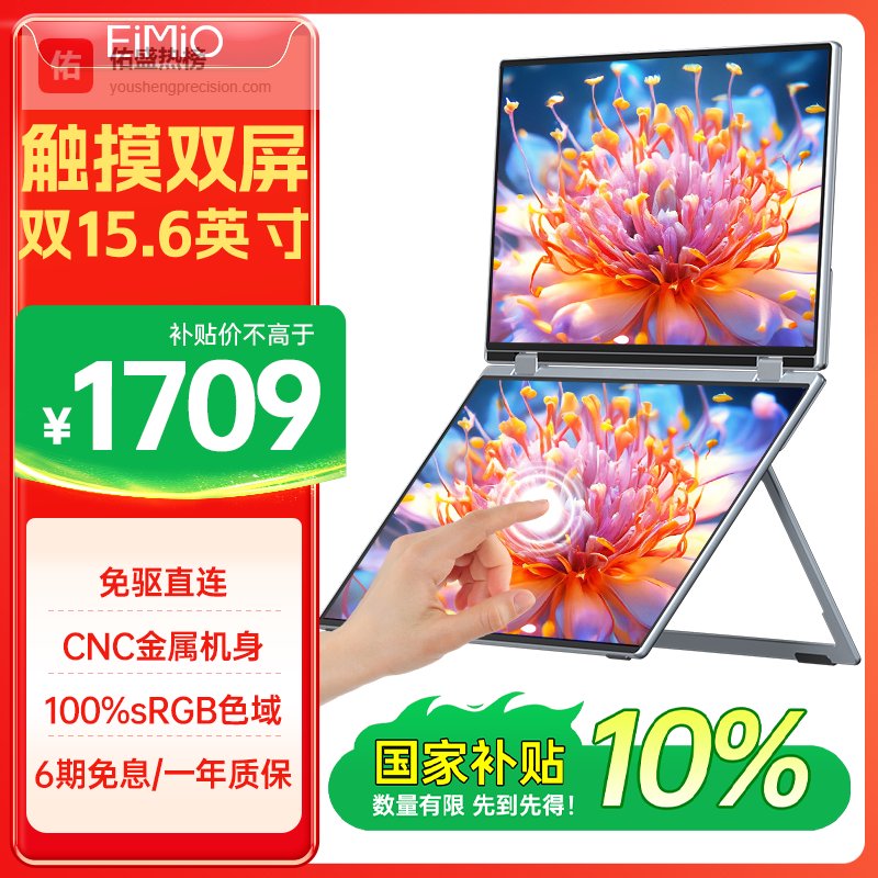 Eimio可折叠双屏便携式显示器 便携屏扩展三屏笔记本副屏电脑扩展屏幕15.6英寸 办公炒股游戏大屏 E11T¥