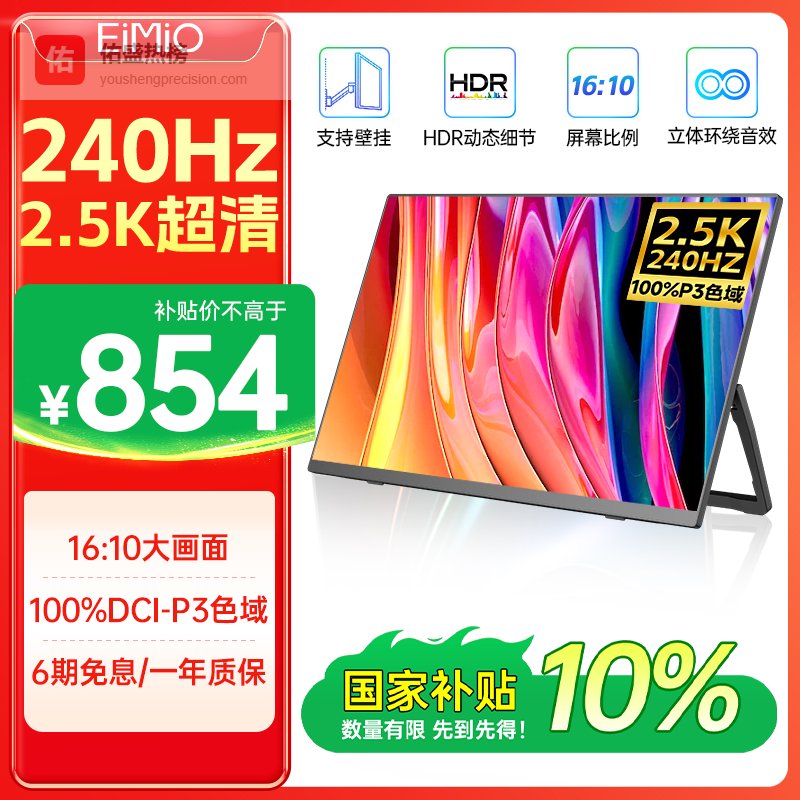 Eimio16英寸2.5k便携式显示器240Hz高刷便携屏 100%DCI-P3色域电脑笔记本副屏switch手机PS5扩展屏X16HR¥