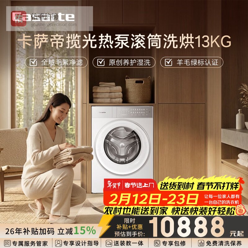 【京东自营】卡萨帝揽光热泵滚筒洗烘13KG洗衣机全自动热泵烘干双擎三变频家电国家补贴15%CEAB1¥
