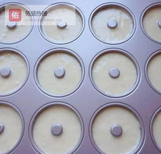裱花袋剪口,面糊挤到模具8分满,中心立柱必须露出,否则烤后“胖”到连在一起。