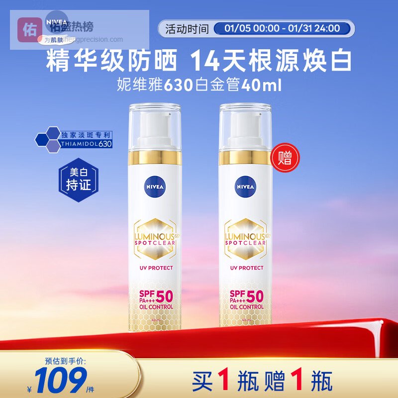 第二款:妮维雅630美白防晒霜40ml SPF50+
