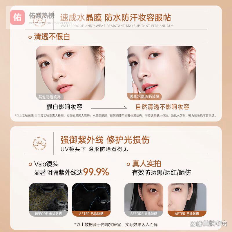 此外,该防晒喷雾具有特有的防水防汗配方,确保在户外运动或者游泳时依然可以保持妆容的完整。无论是户外探险还是海边度假,都无需担心防晒效果流失,给您全天候的愉悦体验,敏感肌肤也能安心使用,令更多的人群享受到专业的呵护。