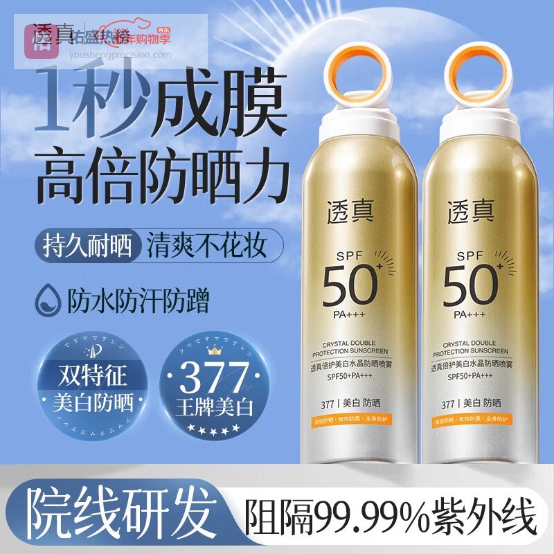 【品牌直营】透真377防晒霜喷雾男女高倍防晒美白防水汗防紫外线隔离遮瑕三合一防晒霜¥