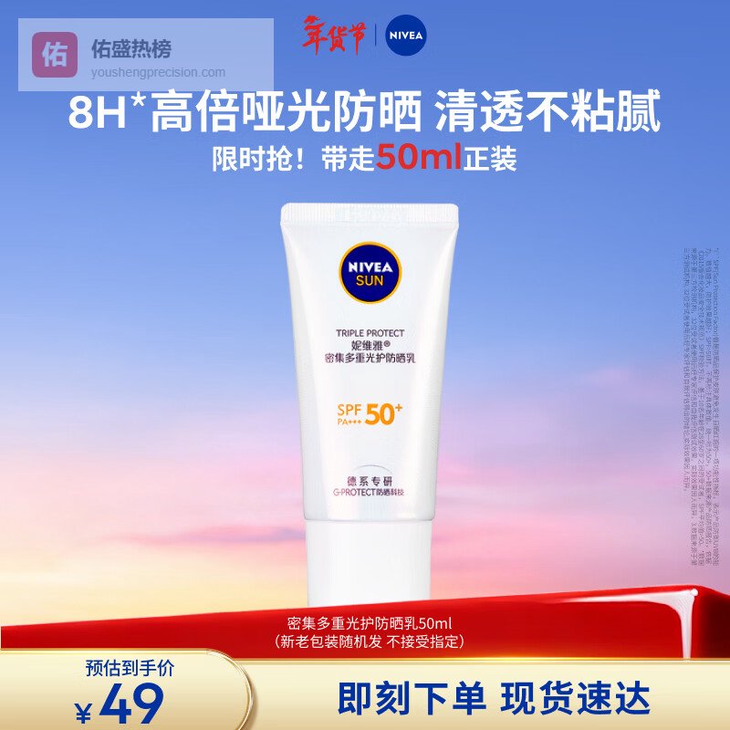 【京东自营】妮维雅清爽不油腻高倍防晒霜密集多重光护防晒乳50mlSPF50+¥