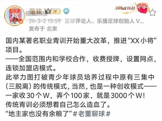 最讽刺的点在这儿:董路天天把“为中国足球干实事”挂嘴边,他的“足球小将”也确实送出去几个苗子。但当你用“实干”的名义,去堵死所有其他实干者发声、交流的渠道时,你干的到底是什么事?你成了足球圈唯一的“真理部”。泰山、恒大、绿城那些踏踏实实搞了二十多年青训的教练,他们遇到的问题、总结的经验,在你“失败者”的审判下,连说出来的资格都没有了。中国足球的落后是全方位的,我们需要的是百家争鸣,是方法论上的“试错”与“融合”,而不是某个“教父”用直播间和热搜榜搞出来的“一言堂”。