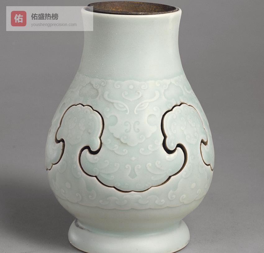 8.4 △ 粉青釉暗兽面纹交泰尊粉青釉与暗刻兽面纹结合,釉色沉静如夜空,底款“交泰”二字暗合宫廷吉语。