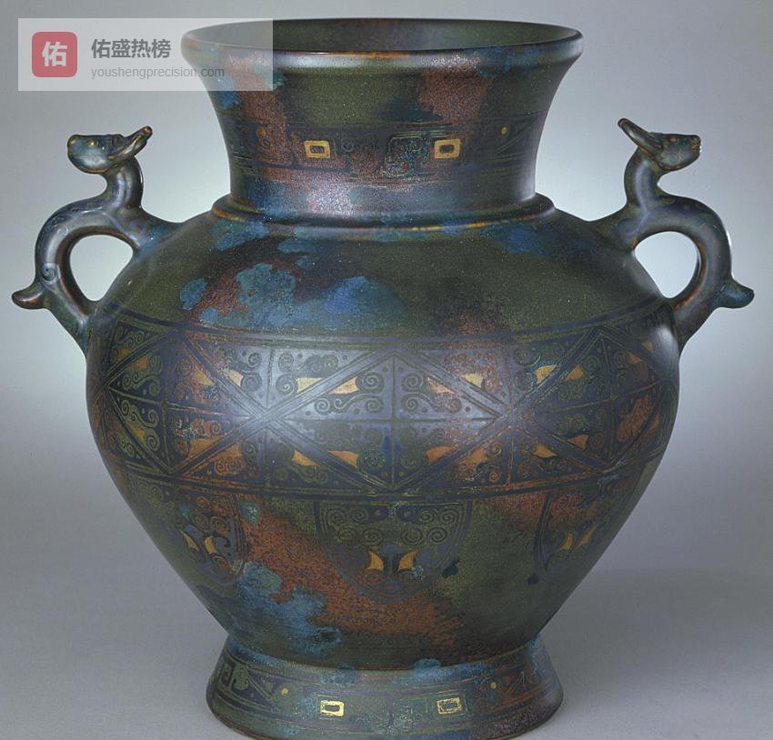 8.2 △ 古铜彩牺耳尊同馆古铜彩牺耳尊,以铜红釉仿古铜锈,器身遍饰回纹与兽面纹,把“仿古”做到极致。