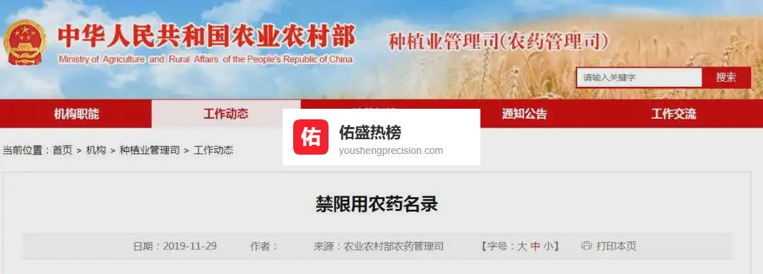 《农药管理条例》同时规定,剧毒、高毒农药不得用于蔬菜、瓜果、茶叶、中草药材及水生植物。以下为最新禁用清单(部分),农民朋友务必牢记: