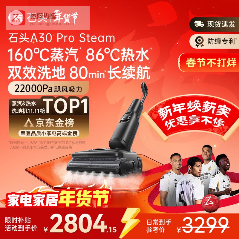 石头A30 Pro Steam【160℃蒸汽86°C热水长续航】全向助力蒸汽洗地机0缠毛0异味吸拖一¥