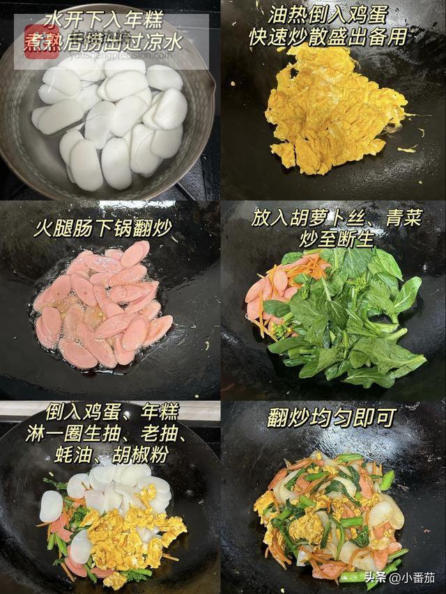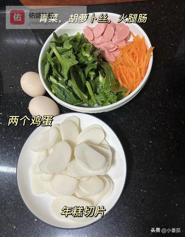 不用特意备菜,冰箱里的胡萝卜丝、白菜丝、香菇丝,再切点肉丝,就能炒出一锅香糯的年糕。