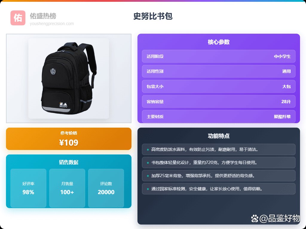 史努比背包怎么样好用吗,我们为您推荐性价比选择1、史努比书包