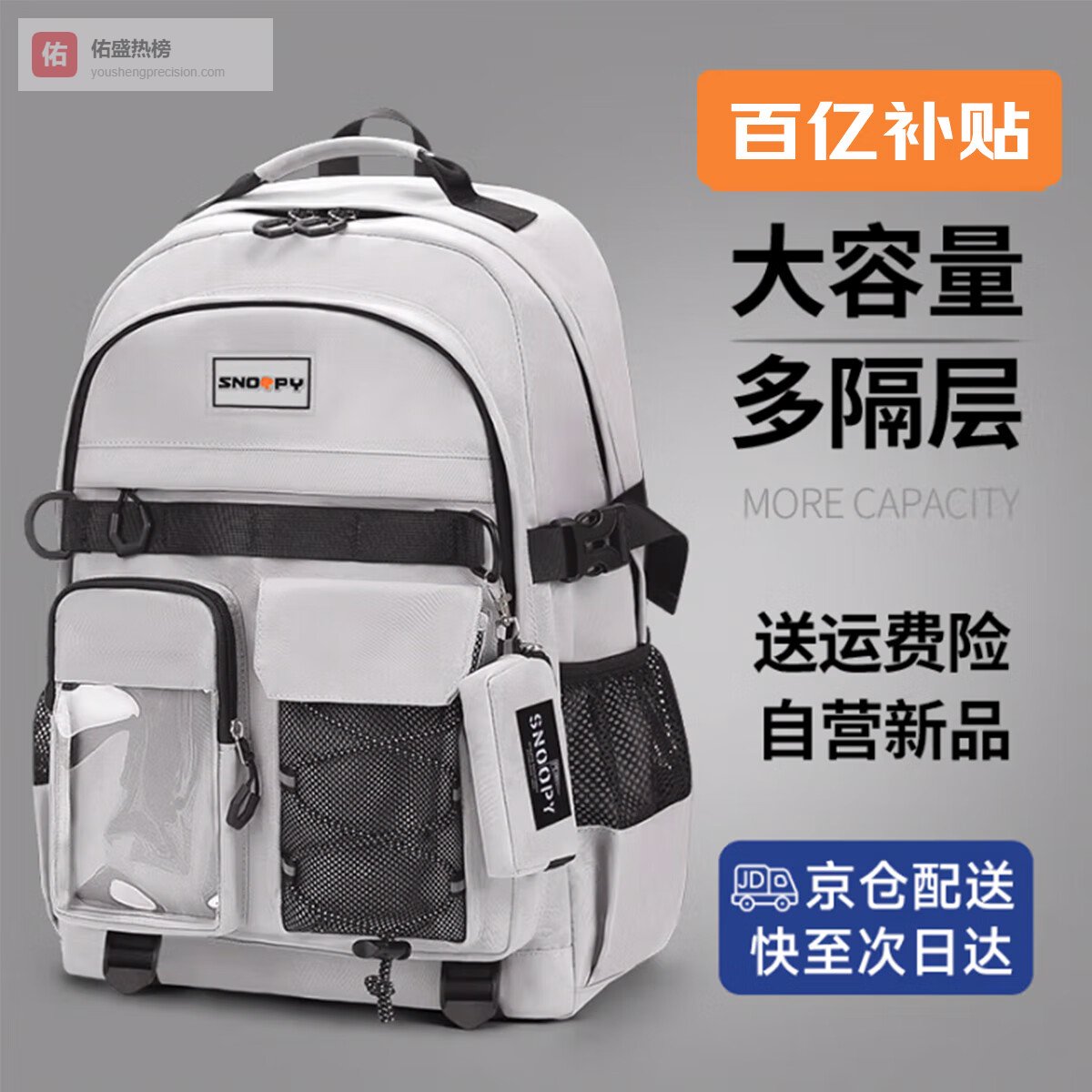 史努比(SNOOPY)书包男生初中生新款大容量女孩双肩包高中学生减负护脊背包 灰色¥
