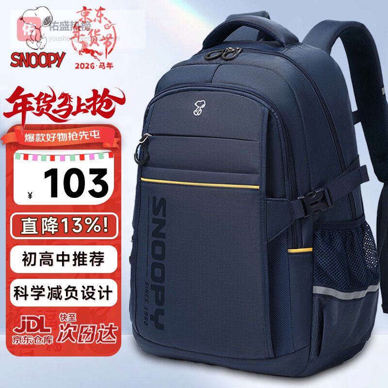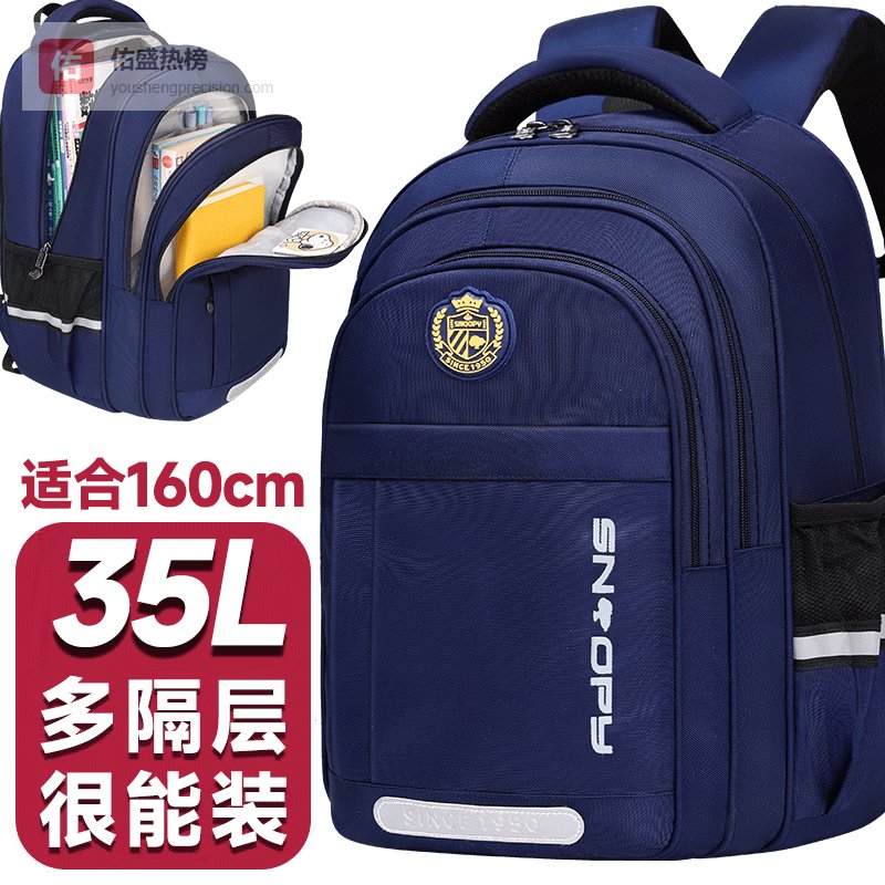史努比(SNOOPY)初中生书包大容量4-9年级多隔层高中学生防泼水双肩背包男 宝蓝¥