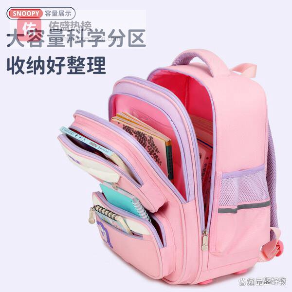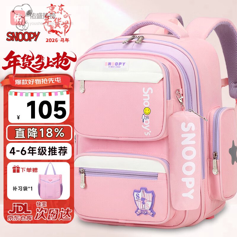 史努比(SNOOPY)书包小学生 儿童护脊减负4-6年级大容量背包女孩双肩包 粉色大号¥