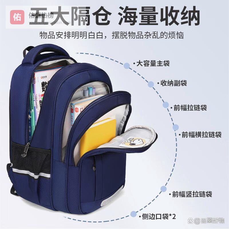 点评:这个书包用的高密度防泼水面料,雨天出门带东西也不用怕,书和东西都能保持干爽,耐脏又实用。容量大,五层分层设计让你分类整理书本、学习用品很方便,找东西不用翻半天,工作学习都挺顺手。