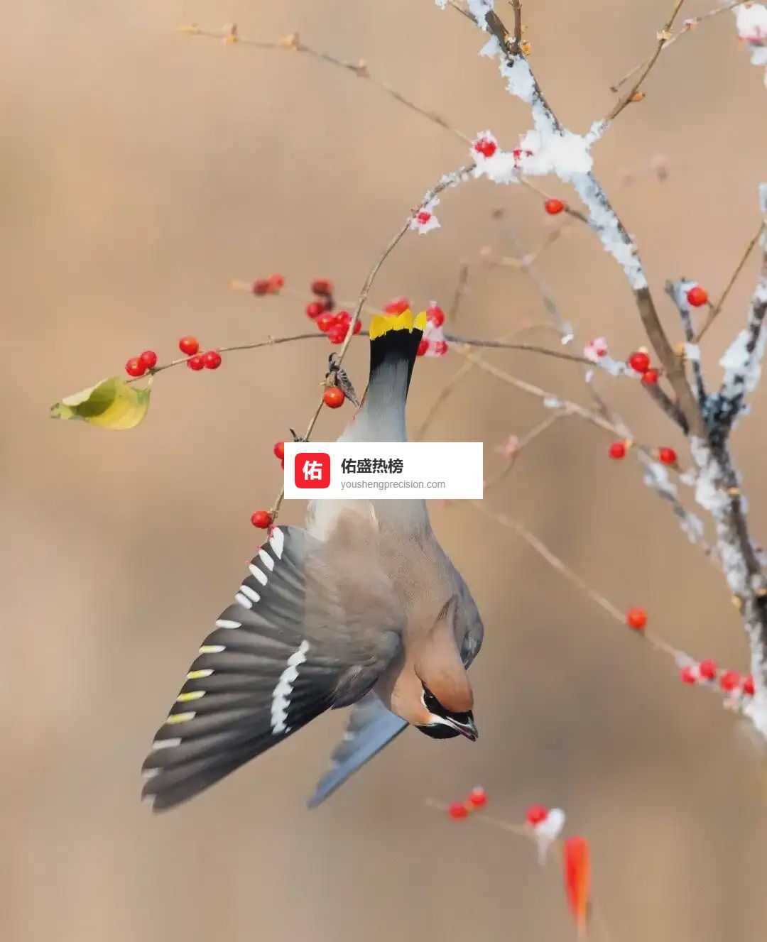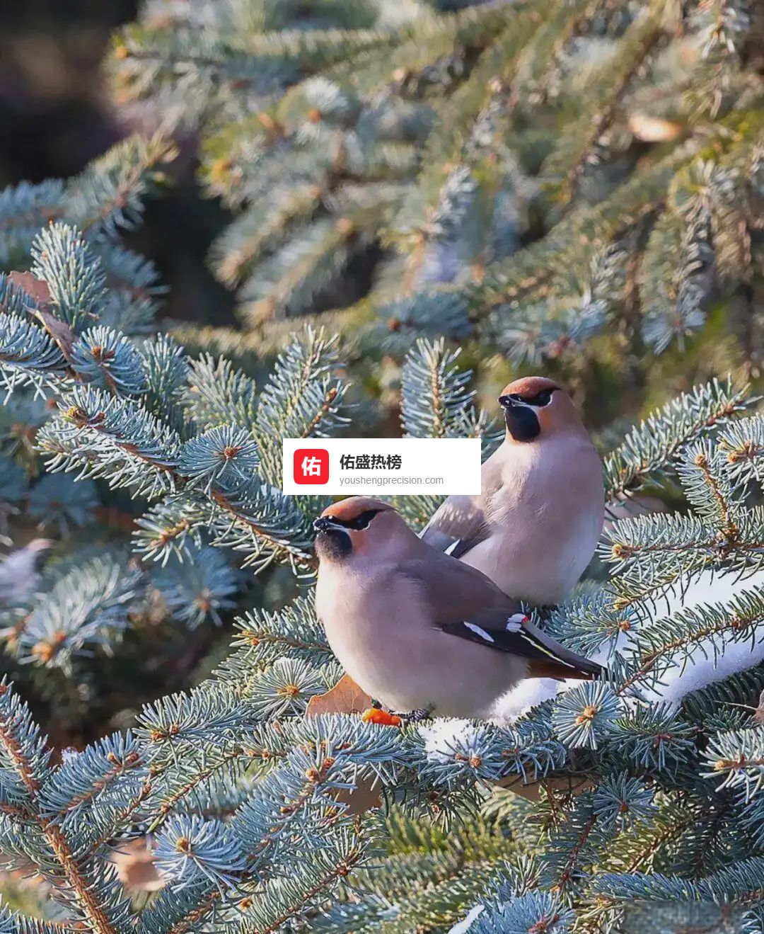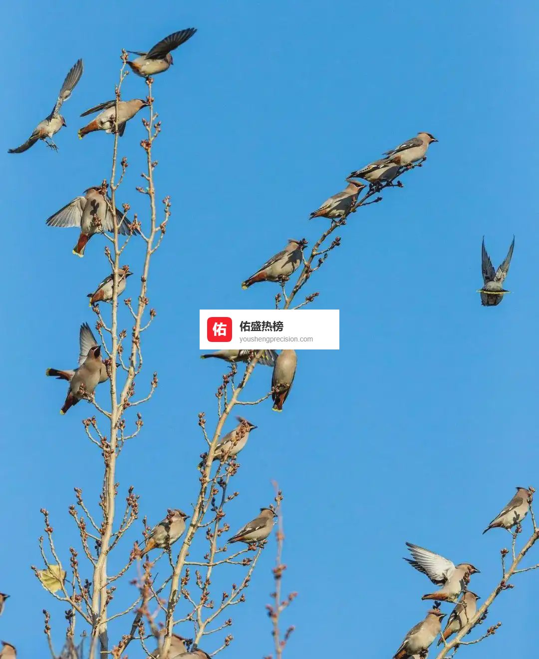 当一群太平鸟同时落在枝头,葡萄灰褐与绯红尾端交织成一幅冷暖对撞的抽象画。它们或低头啄食,或互相梳理羽毛,偶尔振翅高飞,弧线划破寂静的清晨。