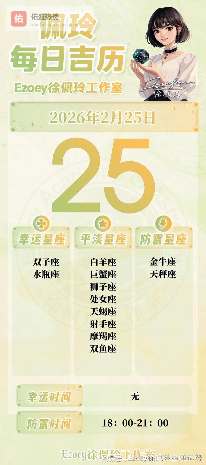 2.25日播报轻度预警日 幸运星座:双子座、水瓶座