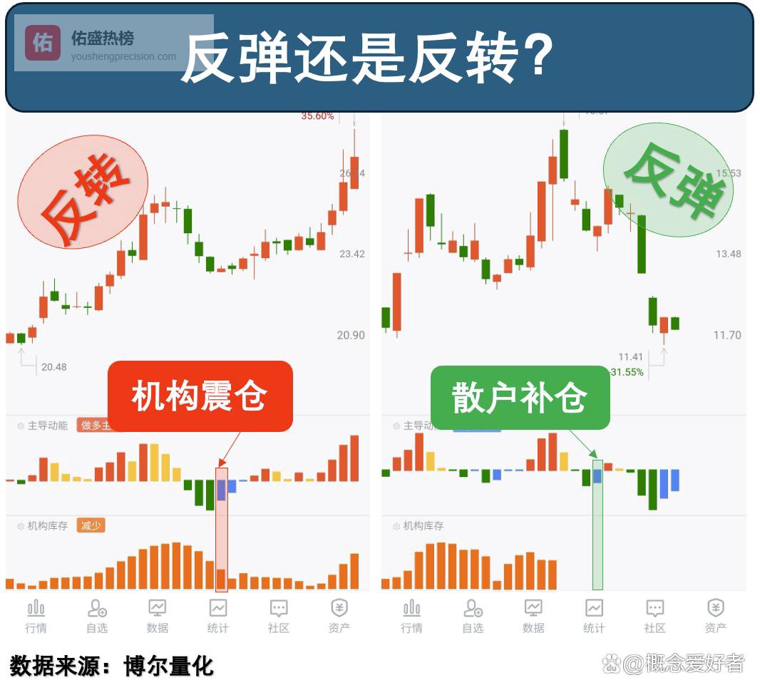 二、用交易行为看清真实意图后来阿凯又碰到更纠结的情况:两只票都是高位反弹,留还是走?换以前他肯定抓瞎,要么卖飞要么套牢。但有了量化数据,答案就很清晰。看图2,左边的票在反弹时,蓝色「回补」和橙色「机构库存」同时在线,说明是机构在调整后积极回补,后面走势自然稳得住;右边的票只有蓝色「回补」,却看不到橙色「机构库存」,说明只是散户在抢反弹,涨势根本没支撑,很快就跌回去了。