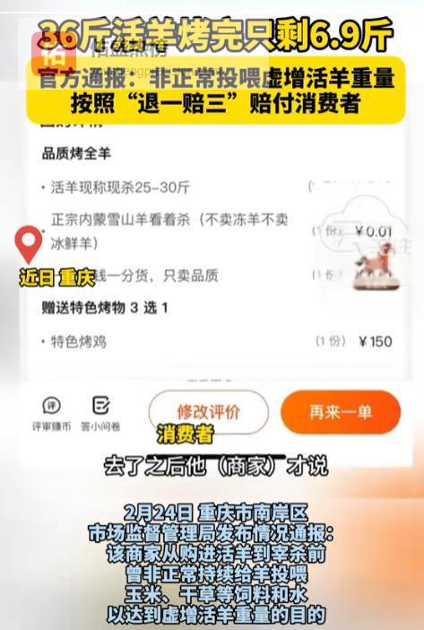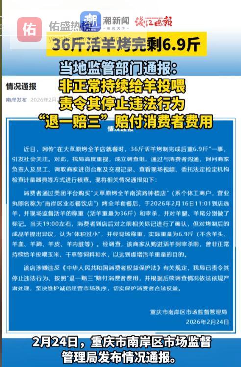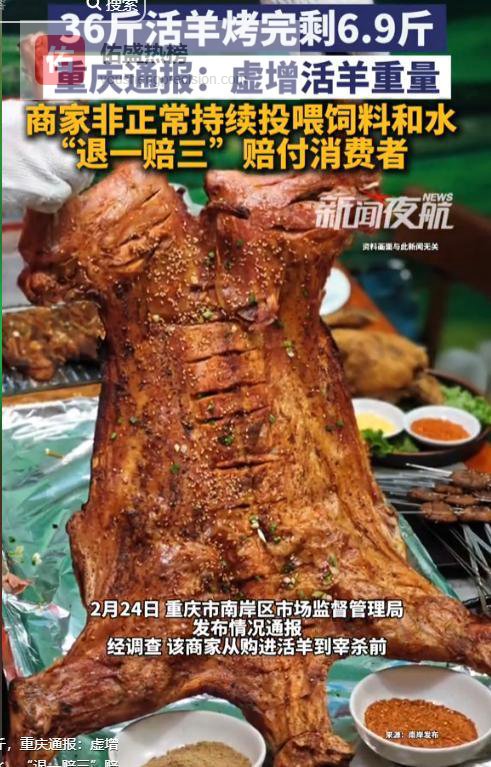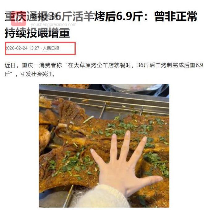 重庆通报36斤活羊烤后6.9斤:曾非正常持续投喂增重---2026-02-24 ----人民日报