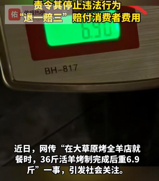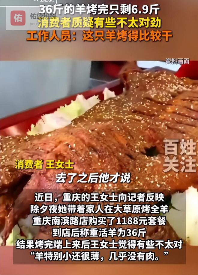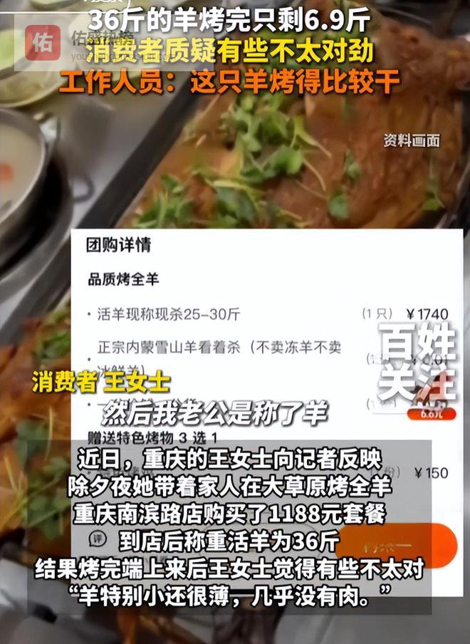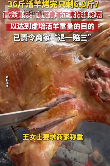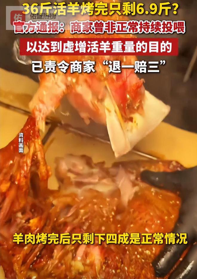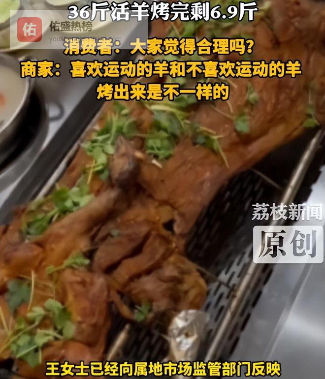店员脸色一变,当场拒绝,说活羊是当面称的,记号也是她自己画的,烤全羊本来就会缩水,只剩四成很正常。