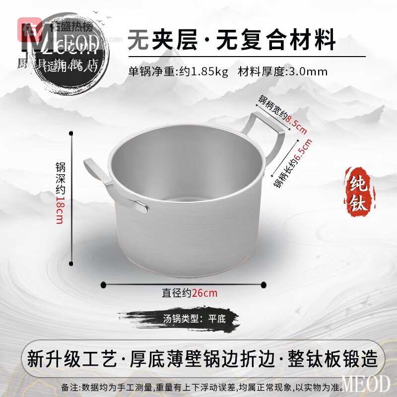MEOD德国进口超轻纯钛炒锅不粘锅无涂层纯钛锅炒菜锅家用圆底锅燃气灶 cm3.0mm厚平底纯钛汤锅(¥