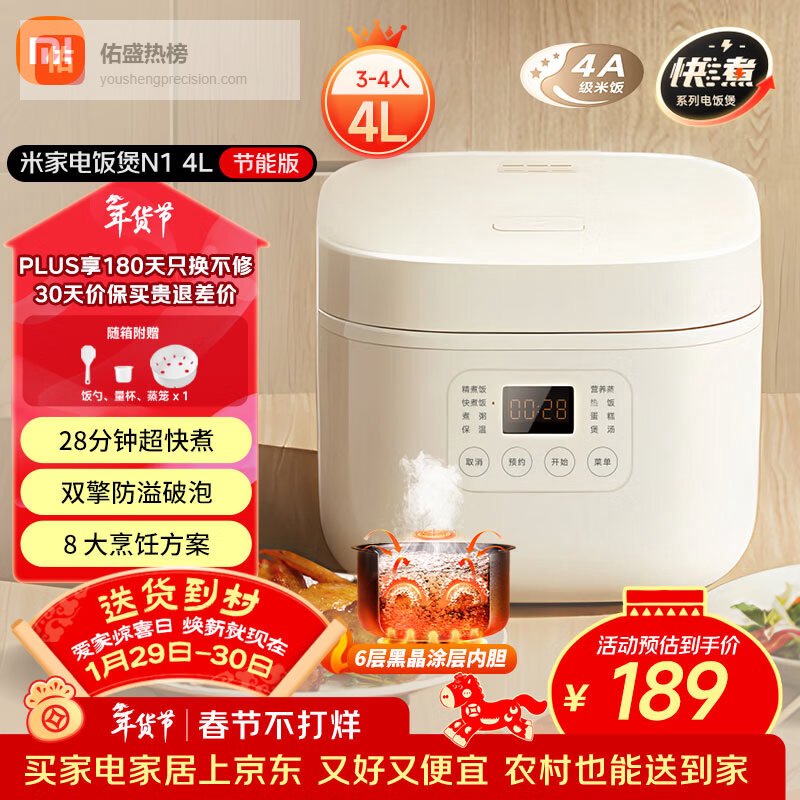 【京东自营】米家小米电饭煲家用3-4人快煮多功能电饭锅不沾黑晶内胆煮粥防溢煲汤蛋糕二级能效N14L【¥