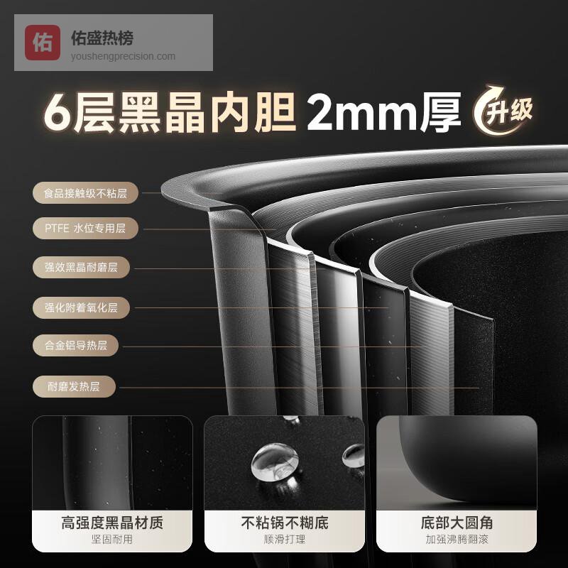 内胆材质和涂层也不可忽视。常见的内胆材质为铝合金,具备良好的导热性和轻便性。而涂层如特氟龙能有效防止粘锅,但长期使用可能会磨损。在选择时,可以考虑是否购买0涂层内胆,虽然清洗难度稍大,但耐用性更强,更适合追求健康烹饪的人群。内胆的厚度直接关系到其耐热性,建议选择厚度在1.5mm以上的产品。
