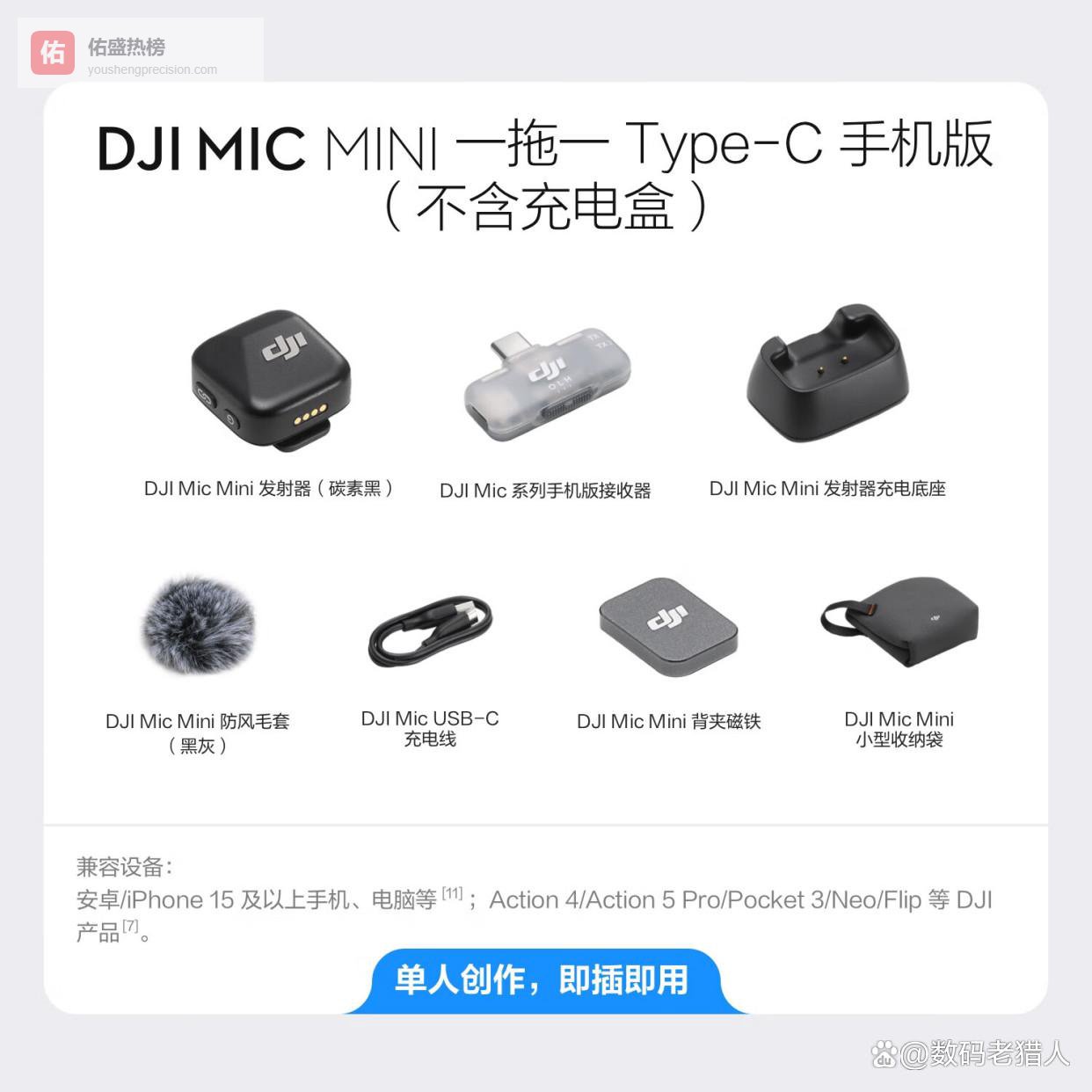 大疆DJI Mic Mini的迷你设计使其成为拍摄和录音的最佳伴侣。这一紧凑型设备不仅便于携带,还能在各种场合下提供高质量录音,将使用者的需求完美契合。无论是出外拍摄还是户外访谈,轻松拆卸的特点让您无需担心收纳问题,随时随地满足您的录音需求。