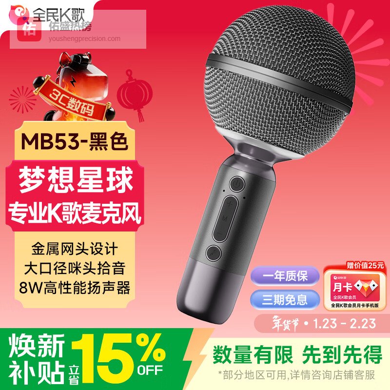 【京东自营】全民K歌麦克风手机K歌麦克风儿童话筒音箱一体自带声卡家庭KTV音响生日礼物MB53黑色¥
