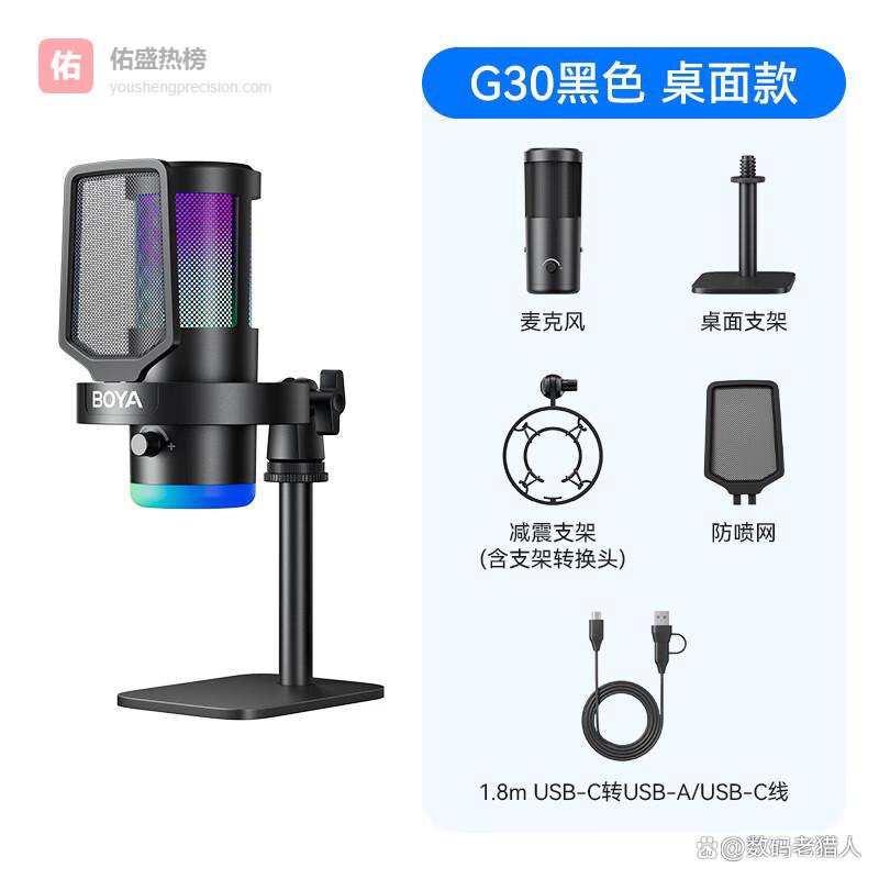 独特的桌面设计使得这款麦克风在使用时显得格外方便。紧凑的外形方便摆放,无需占用过多空间,轻松与电脑或手机连接。无论是在工作室录音还是家庭娱乐中,BOYA G30都能成为你最佳的助力,让创作过程更加顺畅。
