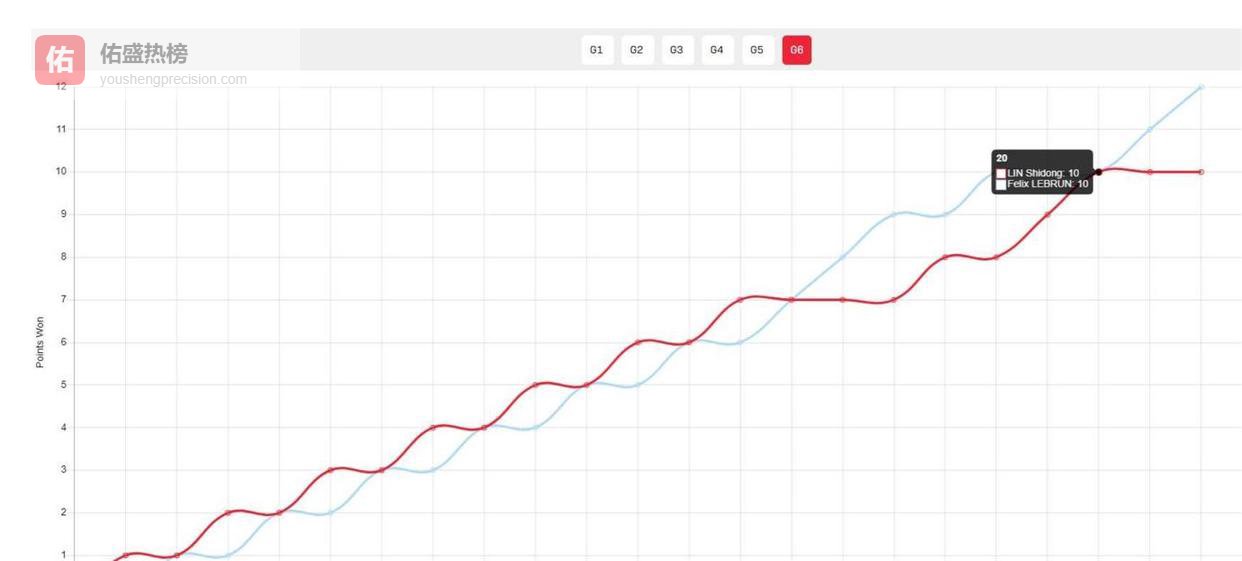 比赛的第一局,就为整晚的剧情定下了基调。林诗栋开局气势如虹,凭借高质量的前三板抢攻,迅速取得了6比1的领先。现场的中国球迷已经开始欢呼,仿佛胜利在望。然而,勒布伦的调整快得惊人。他不再与林诗栋在近台纠缠,而是有意识地将球送到中远台,逼林诗栋退台发力。这一变招,像一把钥匙,瞬间打开了林诗栋的“命门”。林诗栋的击球节奏开始混乱,从6比1到6比7,优势被一点点蚕食。比分交替上升,8平,10平,11平,12平。每一次关键分,勒布伦的眼神都冷峻如冰,出手果断。最终,林诗栋以12比14丢掉了这本该拿下的一局。从天堂到地狱,只用了一局球的时间。