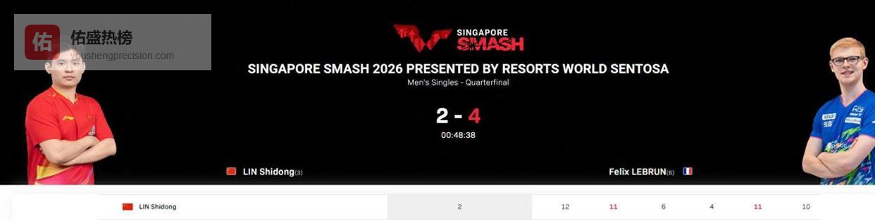 昨晚的比赛结束后,勒布伦冷静地与裁判握手,然后举起双臂接受观众的欢呼。而林诗栋,则迅速收拾好背包,低着头快步离开了球场。他的2026年新加坡大满贯单打之旅,以这样一种近乎惨烈的方式画上了句号。然而,他的赛程还没有完全结束。几个小时后,他还将出现在男双决赛的赛场上,与搭档向鹏一起,争夺另一个冠军。双打的赛场,会成为他摆脱阴霾、重拾信心的起点吗?至少在那个夜晚,聚光灯已经转移,留给林诗栋的,只有失败的苦涩和又一个需要独自消化的漫漫长夜。他的球拍,他的技术,他的信心,都需要在接下来的时间里,进行一次彻彻底底的“检修”。因为对手不会等待,时间也不会。