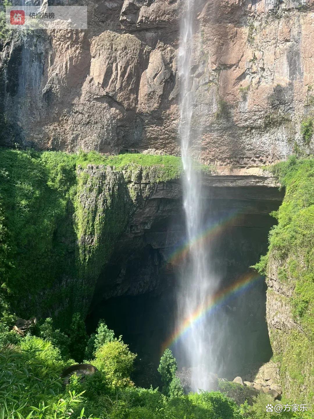 这是个巨大的天坑,瀑布从400米高的悬崖上砸下来 。最绝的是,下午三四点钟,阳光从某个角度照进水雾里,能看见彩虹,有时候还是双层的 。