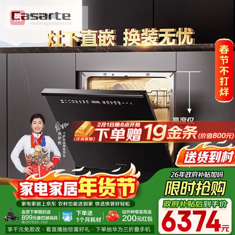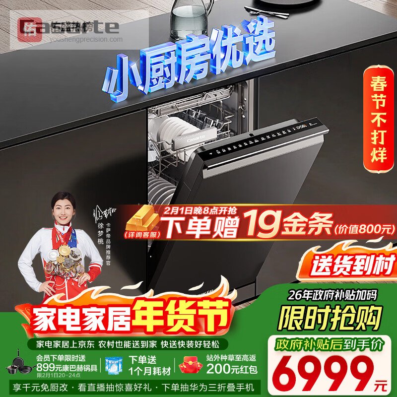【京东自营】卡萨帝【小蛮腰F1】超窄嵌入式小型洗碗机12套大容量45cm一级水效分区洗智能开门速干C¥
